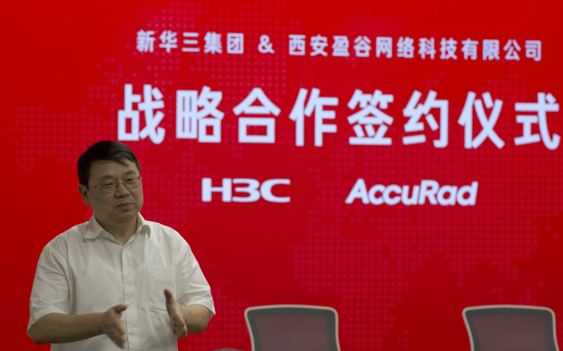暖日和风,石榴花开。6月20日,新华三集团(以下简称“新华三”)与西安盈谷网络(以下简称“盈谷网络”)成功签署战略合作协议。签约现场,新华三联席总裁韩总与盈谷网络黄总共同执笔签约。盈谷网络徐总主持仪式,新华三马总及一众领导共同见证。